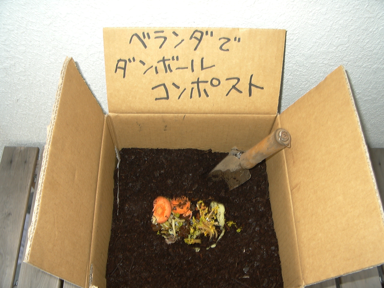 ダンボールコンポスト −かなり生ごみを出す場合(神戸市 香嶋正忠さん考案)